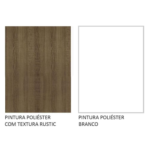O acabamento da estrutura é em amadeirado Rustic e o das portas e frentes é branco. É feito em Pintura Poliéster com 7 camadas que protegem o móvel dos efeitos da água e do calor.