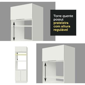 - Uma (1) Torre de 70 cm com dois (2) nichos para forno e micro-ondas, um (1) nicho menor e três (3) portas