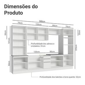 - 52 cm de profundidade nos balcões e na torre e 31 cm nos aéreos