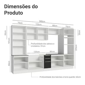- 60 cm de profundidade nos balcões e na torre e 31 cm nos aéreos
