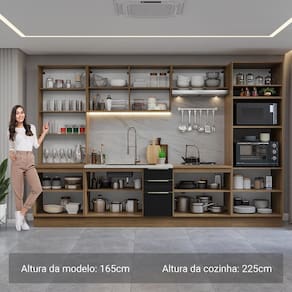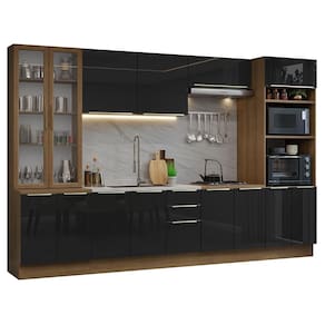 Armário de Cozinha Completa 340cm Rustic/Preto Lux Madesa 02