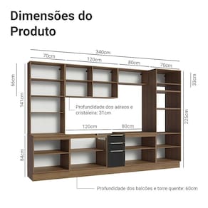 - 60 cm de profundidade nos balcões e na torre e 31 cm nos aéreos
