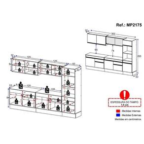O produto será entregue desmontado e não disponibilizamos o serviço de montagem. Acabamento: Pintura Acetinada Texturizada | Tonalidade: Preto | Material: MDP | Referência do Modelo: MP2175 | Coleção: Made | Instruções de Cuidado: Limpar com pano seco para retirar o pó. Não utilizar produtos químicos ou abrasivos a limpeza. Não aplicar lustra móveis. | Sistema de Montagem: O produto acompanha manual de montagem e kit ferragem. O produto será entregue desmontado e não disponibilizamos o serviço de montagem. | Produto Composto por: 1 armário aéreo 120 cm, 1 armário aéreo com portas de vidro 120 cm, 2 balcões com tampo 120 cm, 1 armário para forno e microondas 62 cm, manual de montagem e kit ferragem. | Altura Montado: 203 | Largura Montado: 302 | Profundidade Montado: 53 | Tamanho (L x A x P): 302 x 203 x 53 | Peso do Produto: 154 | Garantia do Fabricante: 3 | Fabricante: Multimóveis | Requer Montagem: Sim | Quantidade de Portas: 10 | Quantidade de Gavetas: 2 | Quantidade de Prateleiras: 8 | Quantidade de Puxadores: 10 | Quantidade de Pés: 14 | Porta com Vidro: Sim | Corrediça: Metálica | Material do Puxador: ABS | Material dos Pés: Polipropileno | Acompanha Pia Inox: Não | Balcão 120 cm compatível para uso de pia: Sim | Tampo Incluso: Sim | Quantidade de Tampos: 2 | Material do Tampo: MDP | Espessura do Tampo: 1.5 | Com Prateleiras: Sim | Produto: Cozinha Completa | Tipo: Modular | Altura (cm): 203 cm | Largura (cm): 302 cm | Profundidade (cm): 53 cm | Estado de Origem: RS | Produto precisa de Montagem?: Sim, sugerimos a contratação do nosso serviço de montagem (para os CEPs em que o serviço está disponível) ou de algum profissional experiente de sua preferência | Ubicação do móvel: Não aplica | Altura do Produto com Embalagem: 87 | Largura do Produto com Embalagem: 65 | Comprimento do Produto com Embalagem: 188 | Peso do Produto com Embalagem: 153.5 | Nome do Produto no Fornecedor: Armário de Cozinha Completa 5 peças com Rodapé MP2175 Made Multimóveis Preto/Dourado | Descrição do Tamanho: (L x A X P): 302 x 203 x 53 cm | Tempo de Garantia: 3 meses | Destaque 1: MDP com acabamento acetinado: maior durabilidade e resistência. | Destaque 2: Balcão com tampo removível (compatível com pia de 120cm). | Destaque 3: Corrediças metálicas: maior leveza no manuseio. | Destaque 4: Possui rodapés que facilitam a limpeza do ambiente. | Destaque 5: Os módulos são individuais, permitindo a montagem de acordo com sua necessidade. | Tipo de móveis de cozinha: Armário/Balcão | Marca: Multimóveis | Materiais do corpo: MDP | Materiais das portas: MDP/Vidro | Altura do armário: N/A | Largura do armário: N/A | Profundidade do armário: N/A | Altura do balcão: 84 cm | Largura do balcão: 240 cm | Profundidade do balcão: 53 cm | Modelo detalhado: N/A | Peso (kg): 154 kg Cor: Branco/Preto