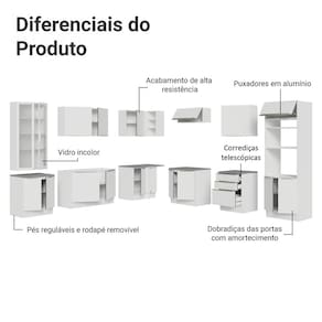 Fabricada com alto padrão de qualidade, a cozinha conta com uma pintura especial e sofisticada, com toque liso e aveludado. Puxadores em alumínio, gavetas com corrediças telescópicas de abertura total, portas com amortecimento para fechamento suave.