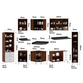 Ambiente composto por: ? 1 Paneleiro 70cm 2 Portas 2 Gavetas 1 Gavetão Safira Luciane Móveis 220 x 70 x 53 -Altura x Largura x Profundidade - cm- ? 1 Paneleiro 40 cm Raso 2 Portas Safira Luciane Móveis 220 x 40 x 36,5 -Altura x Largura x Profundidade - cm- ? 1 Armário para Cozinha Canto Diagonal 2 Portas Safira Luciane Móveis 75 x 76 x 76 -Altura x Largura x Profundidade - cm- ? 1 Armário para Cozinha 60 cm 2 Portas Safira Luciane Móveis 75 x 60 x 36,5 -Altura x Largura x Profundidade - cm- ? 1 Armário para Cozinha 120 cm 3 Portas Safira Luciane 75 x 120 x 36,5 -Altura x Largura x Profundidade - cm- ? 1 Balcão de Cozinha sem Tampo Canto Diagonal 1 Porta Safira Luciane Móveis 88 x 76 x 76 -Altura x Largura x Profundidade - cm- ? 1 Balcão de Cozinha sem Tampo 60cm 2 Portas Safira Luciane Móveis 88 x 60 x 53 -Altura x Largura x Profundidade - cm- ? 1 Balcão de Pia sem Tampo para Cozinha 120cm 2 Portas 4 Gavetas Safira Luciane Móveis 88 x 120 x 53 -Altura x Largura x Profundidade - cm- ? 1 Tampo Luciane 60 cm 8 x 60 x 54,5 -Altura x Largura x Profundidade - cm- ? 1 Tampo Luciane Canto Diagonal 76 cm 8 x 76 x 76 -Altura x Largura x Profundidade - cm- ? 1 Tampo para Balcão 120cm em MDP 25mm com Acabamento em BP Luciane Móveis 8 x 120 x 54,5 -Altura x Largura x Profundidade - cm-