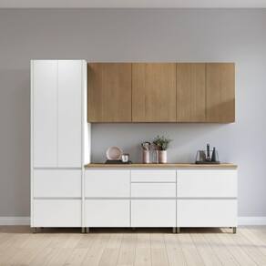 Armário De Cozinha Completa 8 Portas 7 Gavetas 100% Mdf Raissa Nesher Branco / Madeirado