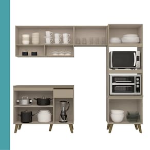 Composta por dois módulos versáteis, conta com dois armários aéreos e nicho incluso, um balcão de 105cm com gaveteiro e uma torre quente com espaço para dois fornos. Equipada com puxadores e pés em ABS, dobradiças e corrediças metálicas e elaborada em MDP de alta qualidade, essa cozinha oferece durabilidade, resistência e sofisticação em cada detalhe!
