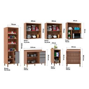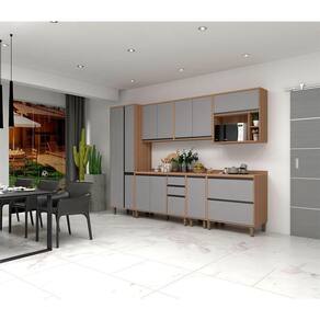 Cozinha Modulada Completa com 7 Peças Vanilla com Cinza Puro Isa Luciane Móveis