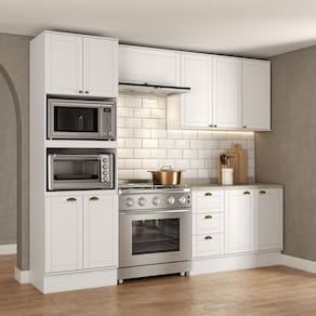 A Cozinha Milla Charm lembra as tradicionais cozinhas norte-, com detalhes especiais em frisos e puxadores porém, tudo em uma simplicidade visual. Possui 4 módulos, entre eles aéreo com 3 portas, balcão com 1200 mm, aéreo basculante de 800 mm e torre quente. Conta também com puxadores em metal no acabamento ouro velho e matéria-prima em BP e MDF, criando uma harmonia fantástica com os demais itens dentro do espaço em que a cozinha está inserida.