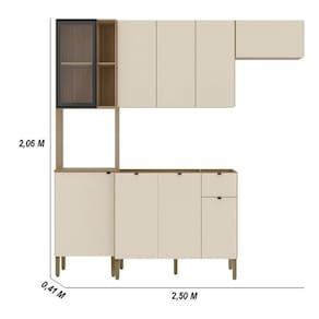 Material: MDF | Freijó/Soft | Cômodo Indicado: Cozinha | Dimensões do Produto (A X L X P): 206 x 250 x 41,8 | Possui Prateleira: Sim | Possui Gaveta: Sim | Quantidade de Gavetas: 1 | Tipo da Corrediça da Gaveta: Telescópicas | Possui portas: Sim | Quantidade de portas: 9 Portas | Tipo de Porta: Bater | Possui porta Basculante: Sim | Possui Pistão á Gás: Sim | Possui Nichos: Sim | Possui pés: Sim | Possui Vidro: Sim | Quantidade de Vidros: 1 | Peso do Produto (Kg): 87.05 | Altura do Produto (cm): 206.7 | Largura do Produto (cm): 250.7 | Comprimento do Produto (cm): 41.8 | Altura do Balcão (cm): 84,5 | Largura do Balcão (cm): 120 | Comprimento do Balcão (cm): 51.5 | Nome do Simples no Fornecedor: Kyoto Plus | Garantia do Fabricante: 90 dias | Instruções/Cuidados: Evite contato com líquidos. Nada de lavar os móveis. Móveis não gostam de umidade. Não deixe o móvel exposto ao sol. Os acessórios também precisam de limpeza. | Necessita de Montagem?: Sim, a montagem é simples mas sugerimos a contratação de algum profissional experiente de sua preferência | Material para filtro: MDF | Material da Estrutura: MDF | Necessita Fixação na Parede: Sim | Conteúdo Embalagem: Cozinha Kyoto Plus | Origem: Nacional | Estado de Origem: Paraná | Quantidade de Volumes: 4 | Peso Bruto (volume 01): 38,9 Kg | Comprimento x Largura x Altura (volume 01): 125 x 68 x 8 | Peso Bruto (volume 02): 16,7 Kg | Comprimento x Largura x Altura (volume 02): 75 x 40 x 10 | Peso Bruto (volume 03): 2,9 Kg | Comprimento x Largura x Altura (volume 03): 77 x 42 x 31 | Peso Bruto (volume 04): 28,4 Kg | Comprimento x Largura x Altura (volume 04): 131 x 50 x 8 Freijó/Soft