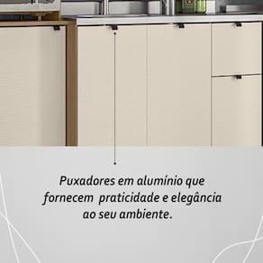 A Cozinha Kyoto Plus é produzida com estrutura 100% MDF de 12 mm, oferecendo alta resistência e durabilidade, Além de proporcionar um espaço ideal para a instalação da pia. Conta com porta de vidro ABS, porta basculante com sistema de suporte a gás, dobradiças metálicas, corrediças telescópicas, puxador em alumínio, prateleiras internas e pés reguláveis em plástico resistente. O acabamento é realizado com pintura de alta qualidade, com secagem em luzes UV, garantindo um visual sofisticado e maior resistência ao móvel.