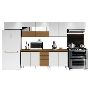 MODELO: Armário de Cozinha Completa com Vidro Reflecta 11 Portas 2 Gavetas Clara Aramóveis