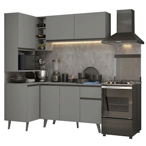 O acabamento cinza, uma tonalidade sofisticada e atemporal, transmite modernidade. Os puxadores e os pés na coloração titanium são detalhes que valorizam o design trazendo um toque contemporâneo.