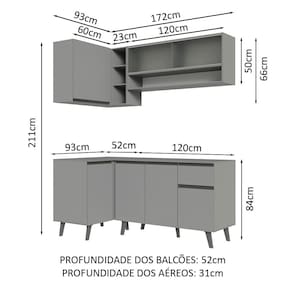 - 52 cm de profundidade nos balcões e 31 cm nos aéreos
