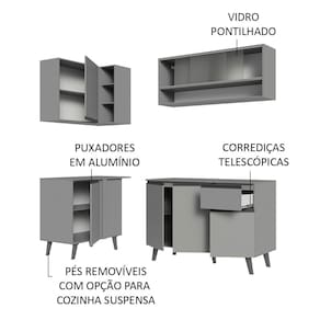 Armário de Cozinha Completa de Canto 265cm Cinza Nice Madesa 02
