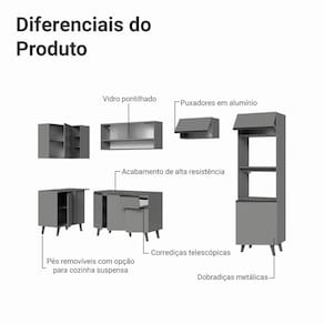 Fabricado com materiais de alta tecnologia, este armário possui dobradiças metálicas nas portas, corrediças telescópicas na gaveta, puxadores de alumínio e lindos vidros no modelo pontilhado.