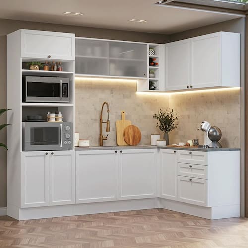 Transforme sua cozinha em um espaço mais funcional e aproveite ao máximo cada canto com a cozinha de 399 cm de largura da Linha Vik.