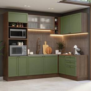 Cor: Verde | Garantia: 3 meses contra defeitos de fabricação | Dimensões - Altura: 225 cm | Dimensões - Largura: 399 cm | Dimensões - Profundidade: 52 cm | Produto: Cozinha Completa | Marca: Madesa | Peso aproximado: 208 kg | Material: MDP | Estado de Origem: RS | Conteúdo da embalagem: Uma Cozinha Completa | Material para Filtro: MDP | Instruções/Cuidados: Utilize um pano limpo, levemente umedecido e seque em seguida a superfície. Não usar produtos químicos ou abrasivos para a limpeza. Recomendamos polir seu móvel com lustra-móveis duas a três vezes por ano. | Produto precisa de Montagem?: Sim | Inclui tampo: Não | Peso Produto Com Embalagem (Kg): 208,17 | Altura do Produto com Embalagem (cm): 119,4 | Largura Produto Com Embalagem (cm): 60,5 | Comprimento Produto Com Embalagem (cm): 228,2 | Descrição do Tamanho: 225 cm x 399 cm x 52cm | Nome do Simples no Fornecedor: Armário de Cozinha Completa de Canto 399 cm Rustic/Verde Vik Madesa 01 | Fabricante: Madesa | RBN: Casa/Móveis/Móveis para Escritório em Casa | Quantidade de Gavetas: 3 | Quantidade de portas: 10 | Tipo de móveis de cozinha: Cozinha Completa | Materiais do corpo: MDP | Quantidade de caixas de embalagem: 18 | Bullet Point 0: Dimensões: 225 cm altura x 399 cm largura x 52 cm profundidade | Bullet Point 1: A combinação perfeita entre design clássico e elementos modernos | Bullet Point 2: Inspiração no estilo americano, frentes com acabamento chanfrado e textura fosca suave ao toque | Bullet Point 3: Puxadores ponto em ouro envelhecido e portas com fechamento suave | É Frágil: Não | Quantidade de Itens: 1 | Certificação de teste externa: Sim | Modelo: GCVK399001M3 | Componentes incluídos: Portas | Precisa de baterias ou pilhas: Não | Número da peça: GCVK399001M3 | Preço sugerido sem impostos: 4699.99 | Peso do item (item_weight): value=208.17;unit=kilograms | Dimensões do item P x L x A (item_depth_width_height): depth#value=52;depth#unit=centimeters;height#value=225;height#unit=centimeters;width#value=399;width#unit=centimeters | Requer montagem (REQUIRES_ASSEMBLY): Sim | Inclui manual de montagem (INCLUDES_ASSEMBLY_MANUAL): Sim Cor: Rustic/Verde