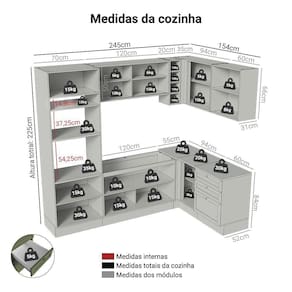 - 52 cm de profundidade nos balcões e 31cm nos aéreos