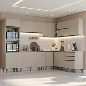 Com layout planejado e módulos bem distribuídos, essa cozinha foi pensada para facilitar o seu dia a dia!. Os grandes destaques ficam por conta dos módulos de canto, que otimizam cada centímetro disponível.