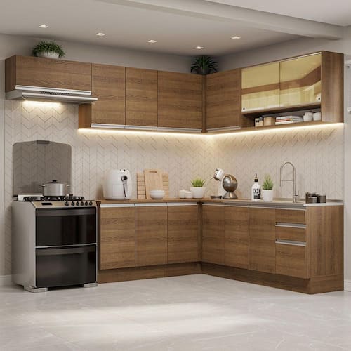Um móvel com design moderno e sofisticado, perfeito para ambientes que possuem muito espaço disponível. Confira este Armário de Cozinha de Canto da linha Glamy da Madesa.
