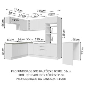 - 52 cm de profundidade nos balcões na torre e 31 cm nos aéreos