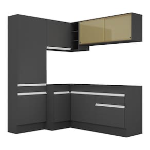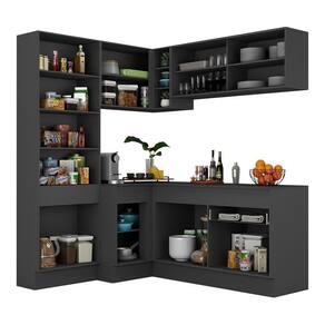 Armário De Cozinha Completa De Canto Com Rodapé Veneza Multimóveis Mp2089.898 Preto/branco