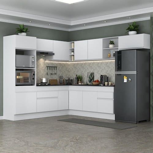 O produto será entregue desmontado e não disponibilizamos o serviço de montagem. Acabamento: Pintura Acetinada Texturizada | Cor: Branco | Tonalidade: Branco | Material: MDP | Referência do Modelo: MP2083 | Coleção: Veneza | Instruções de Cuidado: Limpar com pano seco para retirar o pó. Não utilizar lustra móveis e produtos químicos ou abrasivos à limpeza. | Sistema de Montagem: O produto acompanha manual de montagem juntamente com kit ferragem. O produto será entregue desmontado e não disponibilizamos o serviço de montagem. | Produto Composto por: 1 armário p/ forno e microondas 62cm, 1 armário aéreo 70cm, 1 armário aéreo de canto 90cm, 1 armário aéreo 150cm, 1 balcão c/ tampo 70cm, 1 balcão com tampo de canto 90cm, 1 balcão com tampo 150cm, 1 armário aéreo 70cm, 1 kit com rodapés e kit ferragem. | Altura Montado: 203 | Largura Montado: 222 | Profundidade Montado: 272 | Tamanho (L x A x P): 222 x 203 x 272 | Peso do Produto: 189 | Garantia do Fabricante: 3 | Fabricante: Multimóveis | Requer Montagem: Sim | Quantidade de Portas: 12 | Quantidade de Gavetas: 2 | Quantidade de Prateleiras: 10 | Quantidade de Puxadores: 14 | Quantidade de Pés: 18 | Porta com Vidro: Não | Corrediça: Metálica | Material do Puxador: ABS | Material dos Pés: Polipropileno | Acompanha Pia Inox: Não | Balcão 120 cm compatível para uso de pia: Não | Tampo Incluso: Sim | Quantidade de Tampos: 3 | Material do Tampo: MDP | Espessura do Tampo: 1.5 | Com Prateleiras: Sim | Produto: Cozinha Completa | Tipo: Modular | Altura (cm): 203 cm | Largura (cm): 222 cm | Profundidade (cm): 272 cm | Acessórios incluídos: N/A | Altura do Produto com Embalagem: 193 | Largura do Produto com Embalagem: 65 | Comprimento do Produto com Embalagem: 188 | Peso do Produto com Embalagem: 189 | Nome do Produto no Fornecedor: Armário de Cozinha Completa de Canto com Rodapé Veneza Multimóveis MP2083.891 Branco | Descrição do Tamanho: (L x A X P): 222 cm x 203 cm x 272 cm | Tempo de Garantia: 3 meses | Estado de Origem: RS | Produto precisa de Montagem?: Sim, sugerimos a contratação do nosso serviço de montagem (para os CEPs em que o serviço está disponível) ou de algum profissional experiente de sua preferência | Ubicação do móvel: Não aplica | Destaque 1: MDP com acabamento acetinado: maior durabilidade e resistência. | Destaque 2: Balcão com tampo removível: pode ser utilizado com pia. | Destaque 3: Gavetas com corrediças metálicas: mais leveza no manuseio. | Destaque 4: Garantia de 90 dias contra defeitos de fabricação. | Destaque 5: Os módulos são individuais e você pode montar da maneira que se adaptar melhor ao seu ambiente.