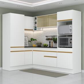 A Cozinha Completa de Canto com Rodapé Veneza Multimóveis MP2084 com Armário e Balcão tem um excelente custo benefício e um amplo espaço interno. Produzida em MDP com acabamento acetinado (cerca de 20% de brilho), que garante maior durabilidade e resistência, possui corrediças metálicas (mais leveza no manuseio), rodapés, que deixam o ambiente mais estiloso, puxadores em ABS e tampo em MDP 15mm com pintura de alta resistência. Os módulos de canto podem ser montados dos dois lados (esquerdo ou direito), conforme a sua preferência. Esta cozinha conta, ainda, com balcão com tampo removível (compatível com pia de 120 cm), com 1 gaveta e 2 portas. Os módulos são individuais e você pode montar da maneira que se adaptar melhor ao seu ambiente. Para deixar sua cozinha mais bonita e organizada, possui módulo para forno e microndas, além de vidro reflecta e compartimento especial para utensílios mais altos.
