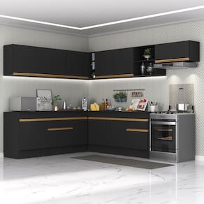O Armário de Cozinha Completa de Canto com Rodapé Veneza Multimóveis V2103 tem um excelente custo benefício e um amplo espaço interno. Produzido em MDP com acabamento acetinado (cerca de 20% de brilho), que garante maior durabilidade e resistência, possui corrediças metálicas (mais leveza no manuseio), rodapés, que deixam o ambiente mais estiloso, puxadores em ABS e tampo em MDP 15mm com pintura de alta resistência. Os módulos de canto podem ser montados dos dois lados (esquerdo ou direito), conforme a sua preferência. Esta cozinha conta, ainda, com balcão com tampo removível (compatível com pia de 120 ou 150 cm). Os módulos são individuais e você pode montar da maneira que se adaptar melhor ao seu ambiente.