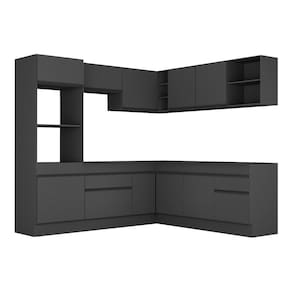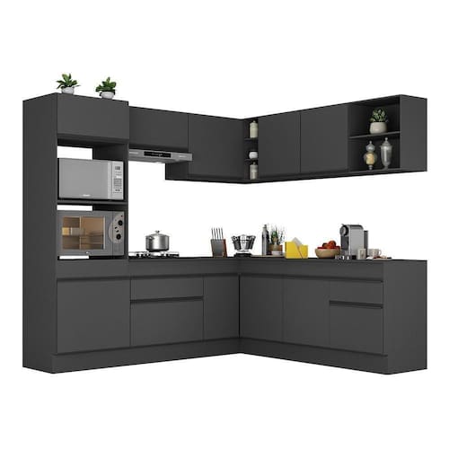 Armário De Cozinha Completa De Canto Com Rodapé Veneza Multimóveis V2080 Preto Preto
