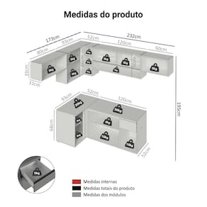 - 52 cm de profundidade nos balcões e 31 cm nos aéreos