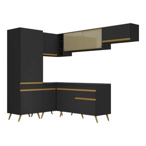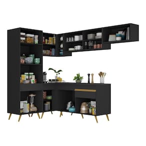 Armário De Cozinha Completa De Canto Veneza Multimóveis V2051 Preto/dourado Preto/dourado