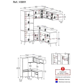 O Armário de Cozinha Completa de Canto Veneza Multimóveis V2051 tem um excelente custo benefício e um amplo espaço interno. Produzido em MDP com acabamento acetinado (cerca de 20% de brilho), que garante maior durabilidade e resistência, possui corrediças metálicas (mais leveza no manuseio), pés retrô em polipropileno, que deixam o ambiente mais estiloso, puxadores em ABS e tampo em MDP 15mm com pintura de alta resistência. Os módulos de canto podem ser montados dos dois lados (esquerdo ou direito), conforme a sua preferência. Esta cozinha conta, ainda, com balcão com tampo removível (compatível com pia de 120 cm), com 1 gaveta e 2 portas. Os módulos são individuais e você pode montar da maneira que se adaptar melhor ao seu ambiente. Para deixar sua cozinha mais bonita e organizada, possui vidro reflecta e compartimento especial para utensílios mais altos.Conteúdo da Embalagem:1 (um) paneleiro 62cm1 (um) armário aéreo de canto 90cm1 (um) armário aéreo com portas de vidro 120cm1 (um) armário aéreo 70cm1 (um) balcão com tampo de canto 90cm1 (um) balcão com tampo 120cm Dimensões do produto montado:Altura: 203cm | Largura: 152 x 242cm | Profundidade: 32cm (aéreos) - 53cm (balcão com tampo e paneleiro)*Você pode consultar as medidas internas na imagem técnica do produto.*As cores do produto podem sofrer variações de tonalidade de acordo com as configurações do seu dispositivo.Imagem meramente ilustrativa. Decoração e eletros não acompanham o produto.O produto será entregue desmontado e não disponibilizamos o serviço de montagem. Acabamento: Pintura Acetinada Texturizada | Cor: Preto/Dourado | Tonalidade: Preto | Material: MDP | Referência do Modelo: V2051 | Coleção: Veneza | Instruções de Cuidado: Limpar com pano seco para retirar o pó. Não utilizar lustra móveis e produtos químicos ou abrasivos à limpeza. | Sistema de Montagem: O produto acompanha manual de montagem e kit ferragem. O produto será entregue desmontado e não disponibilizamos o serviço de montagem. | Produto Composto por: 1 paneleiro 62cm, 1 armário aéreo de canto 90cm, 1 armário aéreo com portas de vidro 120cm, 1 armário aéreo 70cm, 1 balcão com tampo de canto 90cm, 1 balcão com tampo 120cm, manual de montagem e kit ferragem. | Altura Montado: 203 | Largura Montado: 152 | Profundidade Montado: 242 | Tamanho (L x A x P): 152 x 203 x 242 | Peso do Produto: 144 | Garantia do Fabricante: 3 | Fabricante: Multimóveis | Requer Montagem: Sim | Quantidade de Portas: 9 | Quantidade de Gavetas: 1 | Quantidade de Prateleiras: 8 | Quantidade de Puxadores: 8 | Quantidade de Pés: 13 | Porta com Vidro: Sim | Corrediça: Metálica | Material do Puxador: ABS | Material dos Pés: Polipropileno | Acompanha Pia Inox: Não | Balcão 120 cm compatível para uso de pia: Sim | Tampo Incluso: Sim | Quantidade de Tampos: 2 | Material do Tampo: MDP | Espessura do Tampo: 1.5 | Com Prateleiras: Sim | Produto: Cozinha Completa | Tipo: Modular | Altura (cm): 203 cm | Largura (cm): 152 cm | Profundidade (cm): 242 cm | Estado de Origem: RS | Produto precisa de Montagem?: Sim, sugerimos a contratação do nosso serviço de montagem (para os CEPs em que o serviço está disponível) ou de algum profissional experiente de sua preferência | Ubicação do móvel: Não aplica | Altura do Produto com Embalagem: 63 | Largura do Produto com Embalagem: 66 | Comprimento do Produto com Embalagem: 189 | Peso do Produto com Embalagem: 144 | Nome do Produto no Fornecedor: Armário de Cozinha Completa de Canto Veneza Multimóveis V2051 Preto/Dourado | Descrição do Tamanho: (L x A X P): 152 x 203 x 242 cm | Tempo de Garantia: 3 meses | Destaque 1: MDP com acabamento acetinado: maior durabilidade e resistência. | Destaque 2: Balcão com tampo removível: pode ser utilizado com pia. | Destaque 3: Gavetas com corrediças metálicas: mais leveza no manuseio. | Destaque 4: Tamanho do Produto Montado (L x A X P): 152 x 203 x 242 cm | Destaque 5: Os módulos são individuais e você pode montar da maneira que se adaptar melhor ao seu ambiente. Garantia de 90 dias contra defeitos de fabricação. | Marca: Multimóveis | Acessórios incluídos: N/A Cor: Preto/Dourado