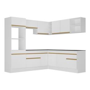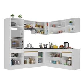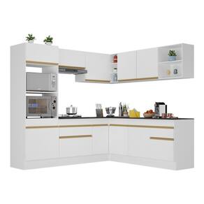 Armário De Cozinha Completa De Canto Com Rodapé Veneza Multimóveis V2080 Branco/dourado Branco/dourado