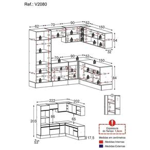 O Armário de Cozinha Completa de Canto com Rodapé Veneza Multimóveis V2080 tem um excelente custo benefício e um amplo espaço interno. Produzido em MDP com acabamento acetinado (cerca de 20% de brilho), que garante maior durabilidade e resistência, possui corrediças metálicas (mais leveza no manuseio), rodapés, que deixam o ambiente mais estiloso, puxadores em ABS e tampo em MDP 15mm com pintura de alta resistência. Os módulos de canto podem ser montados dos dois lados (esquerdo ou direito), conforme a sua referência. Esta cozinha conta, ainda, com balcão com tampo removível (compatível com pia de 150 cm), com 1 gaveta e 3 portas e balcão para cooktop (o recorte do tampo deve ser realizado na hora da montagem conforme a medida do seu fogão) com 1 gaveta e 1 porta. Os módulos são individuais e você pode montar da maneira que se adaptar melhor ao seu ambiente.Conteúdo da Embalagem:1 (um) armário para forno e microondas 62cm1 (um) armário aéreo 70cm1 (um) armário aéreo de canto 90cm1 (um) armário aéreo 150cm1 (um) balcão com tampo 70cm1 (um) balcão com tampo de canto 90cm1 (um) balcão com tampo 150cm1 (um) kit com rodapés Dimensões do produto montado:Altura: 203cm | Largura: 222 x 202cm | Profundidade: 32cm (aéreos) - 53cm (balcão com tampo e paneleiro)*Você pode consultar as medidas internas na imagem técnica do produto.*As cores do produto podem sofrer variações de tonalidade de acordo com as configurações do seu dispositivo.Imagem meramente ilustrativa. Decoração e eletros não acompanham o produto.O produto será entregue desmontado e não disponibilizamos o serviço de montagem. Acabamento: Pintura Acetinada Texturizada | Cor: Preto/Dourado | Tonalidade: Preto | Material: MDP | Referência do Modelo: V2080 | Coleção: Veneza | Instruções de Cuidado: Limpar com pano seco para retirar o pó. Não utilizar lustra móveis e produtos químicos ou abrasivos à limpeza. | Sistema de Montagem: O produto acompanha manual de montagem e kit ferragem. O produto será entregue desmontado e não disponibilizamos o serviço de montagem. | Produto Composto por: 1 armário para forno e microondas 62cm, 1 armário aéreo 70cm, 1 armário aéreo de canto 90cm, 1 armário aéreo 150cm, 1 balcão com tampo 70cm, 1 balcão com tampo de canto 90cm, 1 balcão com tampo 150cm, 1 kit com rodapés, manual de montagem e kit ferragem. | Altura Montado: 203 | Largura Montado: 222 | Profundidade Montado: 202 | Tamanho (L x A x P): 222 x 203 x 202 | Peso do Produto: 179 | Garantia do Fabricante: 3 | Fabricante: Multimóveis | Requer Montagem: Sim | Quantidade de Portas: 11 | Quantidade de Gavetas: 2 | Quantidade de Prateleiras: 10 | Quantidade de Puxadores: 13 | Quantidade de Pés: 18 | Porta com Vidro: Não | Corrediça: Metálica | Material do Puxador: ABS | Material dos Pés: Polipropileno | Acompanha Pia Inox: Não | Balcão 120 cm compatível para uso de pia: Não | Tampo Incluso: Sim | Quantidade de Tampos: 3 | Material do Tampo: MDP | Espessura do Tampo: 1.5 | Com Prateleiras: Sim | Produto: Cozinha Completa | Tipo: Modular | Altura (cm): 203 cm | Largura (cm): 222 cm | Profundidade (cm): 202 cm | Estado de Origem: RS | Produto precisa de Montagem?: Sim, sugerimos a contratação do nosso serviço de montagem (para os CEPs em que o serviço está disponível) ou de algum profissional experiente de sua preferência | Ubicação do móvel: Não aplica | Altura do Produto com Embalagem: 114 | Largura do Produto com Embalagem: 65 | Comprimento do Produto com Embalagem: 188 | Peso do Produto com Embalagem: 179 | Nome do Produto no Fornecedor: Armário de Cozinha Completa de Canto com Rodapé Veneza Multimóveis V2080 Preto/Dourado | Descrição do Tamanho: (L x A X P): 222 x 203 x 202 cm | Tempo de Garantia: 3 meses | Destaque 1: MDP com acabamento acetinado: maior durabilidade e resistência. | Destaque 2: Balcão com tampo removível: pode ser utilizado com pia. | Destaque 3: Gavetas com corrediças metálicas: mais leveza no manuseio. | Destaque 4: Tamanho do Produto Montado (L x A X P): 222 x 203 x 202 cm | Destaque 5: Os módulos são individuais e você pode montar da maneira que se adaptar melhor ao seu ambiente. Garantia de 90 dias contra defeitos de fabricação. | Marca: Multimóveis | Acessórios incluídos: N/A Cor: Branco/Dourado