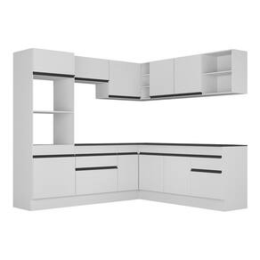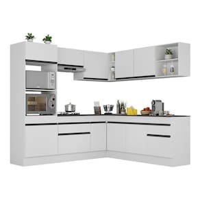 Armário De Cozinha Completa De Canto Com Rodapé Veneza Multimóveis V2080 Branco/preto Branco/preto