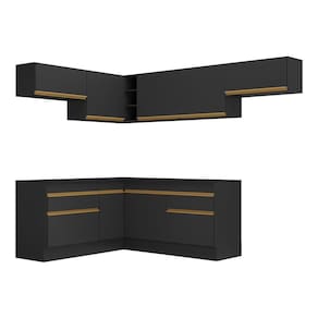 Armário De Cozinha Completa De Canto Com Rodapé Veneza Multimóveis V2104 Preto/dourado Preto/dourado