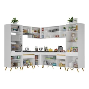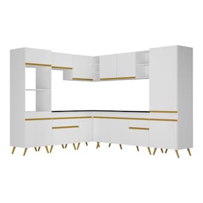 Armário De Cozinha Completa De Canto Veneza Multimóveis V2046 Branco/dourado Branco/dourado