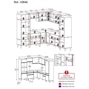 O Armário de Cozinha Completa de Canto Veneza Multimóveis V2046 tem um excelente custo benefício e um amplo espaço interno. Produzido em MDP com acabamento acetinado (cerca de 20% de brilho), que garante maior durabilidade e resistência, possui corrediças metálicas (mais leveza no manuseio), pés retrô em polipropileno, que deixam o ambiente mais estiloso, puxadores em ABS e tampo em MDP 15mm com pintura de alta resistência. Os módulos de canto podem ser montados dos dois lados (esquerdo ou direito), conforme a sua preferência. Esta cozinha conta, ainda, com balcão com tampo removível (compatível com pia de 150 cm), com 1 gaveta e 3 portas e balcão para cooktop (o recorte do tampo deve ser realizado na hora da montagem conforme a medida do seu fogão) com 1 gaveta e 1 porta. Os módulos são individuais e você pode montar da maneira que se adaptar melhor ao seu ambiente.Conteúdo da Embalagem:1 (um) armário para forno e microondas 62cm1 (um) armário aéreo 70cm1 (um) armário aéreo de canto 90cm1 (um) armário aéreo 150cm1 (um) balcão com tampo 70cm1 (um) balcão com tampo de canto 90cm1 (um) balcão com tampo 150cm1 (um) paneleiro 62cmDimensões do produto montado:Altura: 203cm | Largura: 222 x 264cm | Profundidade: 32cm (aéreos) - 53cm (balcão com tampo e paneleiro)*Você pode consultar as medidas internas na imagem técnica do produto.*As cores do produto podem sofrer variações de tonalidade de acordo com as configurações do seu dispositivo.Imagem meramente ilustrativa. Decoração e eletros não acompanham o produto.O produto será entregue desmontado e não disponibilizamos o serviço de montagem. Acabamento: Pintura Acetinada Texturizada | Cor: Preto/Dourado | Tonalidade: Preto | Material: MDP | Referência do Modelo: V2046 | Coleção: Veneza | Instruções de Cuidado: Limpar com pano seco para retirar o pó. Não utilizar lustra móveis e produtos químicos ou abrasivos à limpeza. | Sistema de Montagem: O produto acompanha manual de montagem e kit ferragem. O produto será entregue desmontado e não disponibilizamos o serviço de montagem. | Produto Composto por: 1 armário para forno e microondas 62cm, 1 armário aéreo 70cm, 1 armário aéreo de canto 90cm, 1 armário aéreo 150cm, 1 balcão com tampo 70cm, 1 balcão com tampo de canto 90cm, 1 balcão com tampo 150cm, 1 paneleiro 62cm, manual de montagem e kit ferragem. | Altura Montado: 203 | Largura Montado: 222 | Profundidade Montado: 264 | Tamanho (L x A x P): 222 x 203 x 264 | Peso do Produto: 208 | Garantia do Fabricante: 3 | Fabricante: Multimóveis | Requer Montagem: Sim | Quantidade de Portas: 13 | Quantidade de Gavetas: 2 | Quantidade de Prateleiras: 12 | Quantidade de Puxadores: 15 | Quantidade de Pés: 22 | Porta com Vidro: Não | Corrediça: Metálica | Material do Puxador: ABS | Material dos Pés: Polipropileno | Acompanha Pia Inox: Não | Balcão 120 cm compatível para uso de pia: Não | Tampo Incluso: Sim | Quantidade de Tampos: 3 | Material do Tampo: MDP | Espessura do Tampo: 1.5 | Com Prateleiras: Sim | Produto: Cozinha Completa | Tipo: Modular | Altura (cm): 203 cm | Largura (cm): 222 cm | Profundidade (cm): 264 cm | Estado de Origem: RS | Produto precisa de Montagem?: Sim, sugerimos a contratação do nosso serviço de montagem (para os CEPs em que o serviço está disponível) ou de algum profissional experiente de sua preferência | Ubicação do móvel: Não aplica | Altura do Produto com Embalagem: 77 | Largura do Produto com Embalagem: 66 | Comprimento do Produto com Embalagem: 189 | Peso do Produto com Embalagem: 208 | Nome do Produto no Fornecedor: Armário de Cozinha Completa de Canto Veneza Multimóveis V2046 Preto/Dourado | Descrição do Tamanho: (L x A X P): 222 x 203 x 264 cm | Tempo de Garantia: 3 meses | Destaque 1: MDP com acabamento acetinado: maior durabilidade e resistência. | Destaque 2: Balcão com tampo removível: pode ser utilizado com pia. | Destaque 3: Gavetas com corrediças metálicas: mais leveza no manuseio. | Destaque 4: Tamanho do Produto Montado (L x A X P): 222 x 203 x 264 cm | Destaque 5: Os módulos são individuais e você pode montar da maneira que se adaptar melhor ao seu ambiente. Garantia de 90 dias contra defeitos de fabricação. | Marca: Multimóveis | Acessórios incluídos: N/A Cor: Branco/Dourado