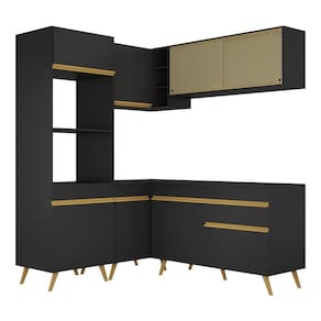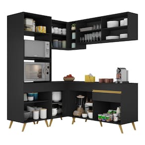 Armário De Cozinha Completa De Canto Veneza Multimóveis V2063 Preto/dourado Preto/dourado