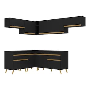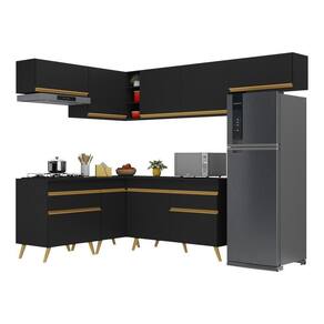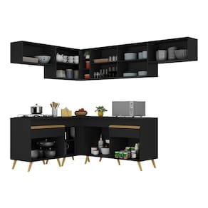 Armário De Cozinha Completa De Canto Veneza Multimóveis V2069 Preto/dourado Preto/dourado