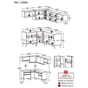 O Armário de Cozinha Completa de Canto Veneza Multimóveis V2069 tem um excelente custo benefício e um amplo espaço interno. Produzido em MDP com acabamento acetinado (cerca de 20% de brilho), que garante maior durabilidade e resistência, possui corrediças metálicas (mais leveza no manuseio), pés retrô em polipropileno, que deixam o ambiente mais estiloso, puxadores em ABS e tampo em MDP 15mm com pintura de alta resistência. Os módulos de canto podem ser montados dos dois lados (esquerdo ou direito), conforme a sua preferência. Esta cozinha conta, ainda, com balcão com tampo removível (compatível com pia de 120 cm) com 1 gaveta e 2 portas e balcão para cooktop (o recorte do tampo deve ser realizado na hora da montagem conforme a medida do seu fogão) com 1 gaveta e 1 porta. Os módulos são individuais e você pode montar da maneira que se adaptar melhor ao seu ambiente.Conteúdo da Embalagem:2 (dois) armários aéreos 70cm1 (um) armário aéreo de canto 90cm1 (um) armário aéreo 120cm1 (um) balcão com tampo 70cm1 (um) balcão com tampo de canto 90cm1 (um) balcão com tampo 120cmDimensões do produto montado:Altura: 203cm | Largura: 160 x 242cm | Profundidade: 32cm (aéreos) - 53cm (balcão com tampo)*Você pode consultar as medidas internas na imagem técnica do produto.*As cores do produto podem sofrer variações de tonalidade de acordo com as configurações do seu dispositivo.Imagem meramente ilustrativa. Decoração e eletros não acompanham o produto.O produto será entregue desmontado e não disponibilizamos o serviço de montagem. Acabamento: Pintura Acetinada Texturizada | Cor: Preto/Dourado | Tonalidade: Preto | Material: MDP | Referência do Modelo: V2069 | Coleção: Veneza | Instruções de Cuidado: Limpar com pano seco para retirar o pó. Não utilizar lustra móveis e produtos químicos ou abrasivos à limpeza. | Sistema de Montagem: O produto acompanha manual de montagem e kit ferragem. O produto será entregue desmontado e não disponibilizamos o serviço de montagem. | Produto Composto por: 2 armários aéreos 70cm, 1 armário aéreo de canto 90cm, 1 armário aéreo 120cm, 1 balcão com tampo 70cm, 1 balcão com tampo de canto 90cm, 1 balcão com tampo 120cm, manual de montagem e kit ferragem. | Altura Montado: 203 | Largura Montado: 160 | Profundidade Montado: 242 | Tamanho (L x A x P): 160 x 203 x 242 | Peso do Produto: 128 | Garantia do Fabricante: 3 | Fabricante: Multimóveis | Requer Montagem: Sim | Quantidade de Portas: 9 | Quantidade de Gavetas: 2 | Quantidade de Prateleiras: 6 | Quantidade de Puxadores: 11 | Quantidade de Pés: 13 | Porta com Vidro: Não | Corrediça: Metálica | Material do Puxador: ABS | Material dos Pés: Polipropileno | Acompanha Pia Inox: Não | Balcão 120 cm compatível para uso de pia: Sim | Tampo Incluso: Sim | Quantidade de Tampos: 3 | Material do Tampo: MDP | Espessura do Tampo: 1.5 | Com Prateleiras: Sim | Produto: Cozinha Completa | Tipo: Modular | Altura (cm): 203 cm | Largura (cm): 160 cm | Profundidade (cm): 242 cm | Estado de Origem: RS | Produto precisa de Montagem?: Sim, sugerimos a contratação do nosso serviço de montagem (para os CEPs em que o serviço está disponível) ou de algum profissional experiente de sua preferência | Ubicação do móvel: Não aplica | Altura do Produto com Embalagem: 63 | Largura do Produto com Embalagem: 65 | Comprimento do Produto com Embalagem: 125 | Peso do Produto com Embalagem: 128 | Nome do Produto no Fornecedor: Armário de Cozinha Completa de Canto Veneza Multimóveis V2069 Preto/Dourado | Descrição do Tamanho: (L x A X P): 160 x 203 x 242 cm | Tempo de Garantia: 3 meses | Destaque 1: MDP com acabamento acetinado: maior durabilidade e resistência. | Destaque 2: Balcão com tampo removível: pode ser utilizado com pia. | Destaque 3: Gavetas com corrediças metálicas: mais leveza no manuseio. | Destaque 4: Tamanho do Produto Montado (L x A X P): 160 x 203 x 242 cm | Destaque 5: Os módulos são individuais e você pode montar da maneira que se adaptar melhor ao seu ambiente. Garantia de 90 dias contra defeitos de fabricação. | Marca: Multimóveis | Acessórios incluídos: N/A Cor: Preto/Dourado