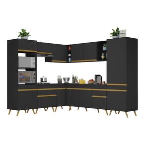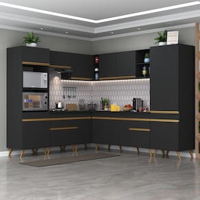 Conteúdo da Embalagem: 1 (um) armário para forno e microondas 62cm 1 (um) armário aéreo 70cm 1 (um) armário aéreo de canto 90cm 1 (um) armário aéreo 150cm 1 (um) balcão com tampo 70cm 1 (um) balcão com tampo de canto 90cm 1 (um) balcão com tampo 150cm 1 (um) paneleiro 62cm