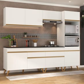 A Cozinha Completa 5 peças com Armário e Balcão FG3713 Veneza Multimóveis tem um excelente custo benefício e um amplo espaço interno. Produzida em MDP com acabamento acetinado (cerca de 20% de brilho), que garante maior durabilidade e resistência, possui corrediças metálicas (mais leveza no manuseio), pés retrô em polipropileno, que deixam o ambiente mais estiloso, puxadores em ABS e tampo em MDP 15mm com pintura de alta resistência. Os módulos são individuais e você pode montar da maneira que se adaptar melhor ao seu ambiente. O balcão possui tampo removível (compatível com pia de 120 cm). Para deixar sua cozinha mais bonita e completa possui compartimento para utensílios mais altos, balcão para cooktop, além de espaço para forno e microondas.