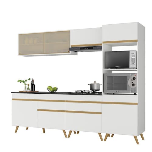 A Cozinha Completa 5 peças com Armário e Balcão FG3715 Veneza Multimóveis tem um excelente custo benefício e um amplo espaço interno. Produzida em MDP com acabamento acetinado (cerca de 20% de brilho), que garante maior durabilidade e resistência, possui corrediças metálicas (mais leveza no manuseio), pés retrô em polipropileno, que deixam o ambiente mais estiloso, puxadores em ABS e tampo em MDP 15mm com pintura de alta resistência. Os módulos são individuais e você pode montar da maneira que se adaptar melhor ao seu ambiente. O balcão possui tampo removível (compatível com pia de 120 cm). Para deixar sua cozinha mais bonita e completa possui vidro reflecta, compartimento especial para utensílios mais altos, balcão para cooktop, além de espaço para forno e microondas.