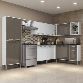 Conteúdo da Embalagem: 1 (um) nicho horizontal 1 (um) armário aéreo de 105 cm 1 (um) paneleiro duplo 1 (um) balcão com tampo de 105 cm 1 (um) balcão com tampo de canto 1 (um) armário aéreo de canto 1 (um) balcão com tampo de 70 cm 1 (um) armário aéreo de 70 cm
