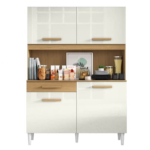 O Armário de Cozinha Completa Perola possui amplo espaço interno, para guardar todos os seus utensílios. Acabamento em verniz garantindo a conservação do móvel. Possui 1 gaveta com corrediças metálicas, que oferecem um deslizar suave das gavetas. Confeccionado com produtos de alta qualidade, que oferecem ao móvel beleza, resistência, durabilidade e prolongando a vida útil do produto.
