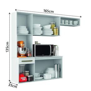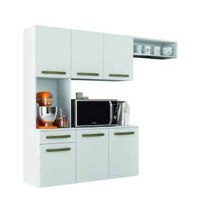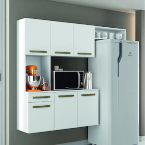 O Armário de Cozinha Completa Suspenso Belíssima traz qualidade, elegância e praticidade para o seu dia a dia. Contém 6 portas com prateleiras bem divididas para melhor aproveitamento do espaço, armário aéreo com nicho organizador, puxadores modernos e balcão com tampo que se torna uma excelente bancada para acomodar seus utensílios de cozinha. Com muita funcionalidade, vai deixar seu lar ainda mais bonito.