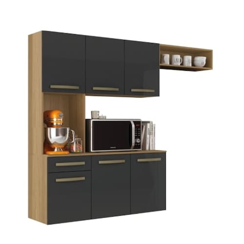 Armário de Cozinha Completa Suspenso com Balcão 6 Portas 1 Gaveta Luna Aramóveis - Grafite